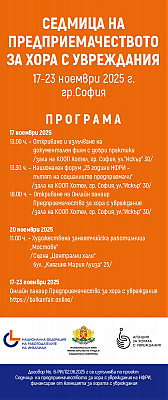 От 17 до 23 ноември 2025 г. НФРИ проведе традиционната Седмица на предприемачеството за хора с увреждания, реализирана с подкрепата на Агенцията за хората с увреждания.